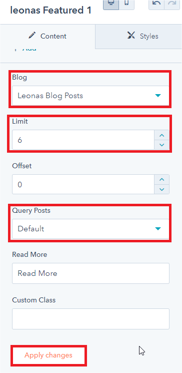 - Choose Module, in field Blog choose blog for module. Then in field Offset set offer for module. Click Apply changes.