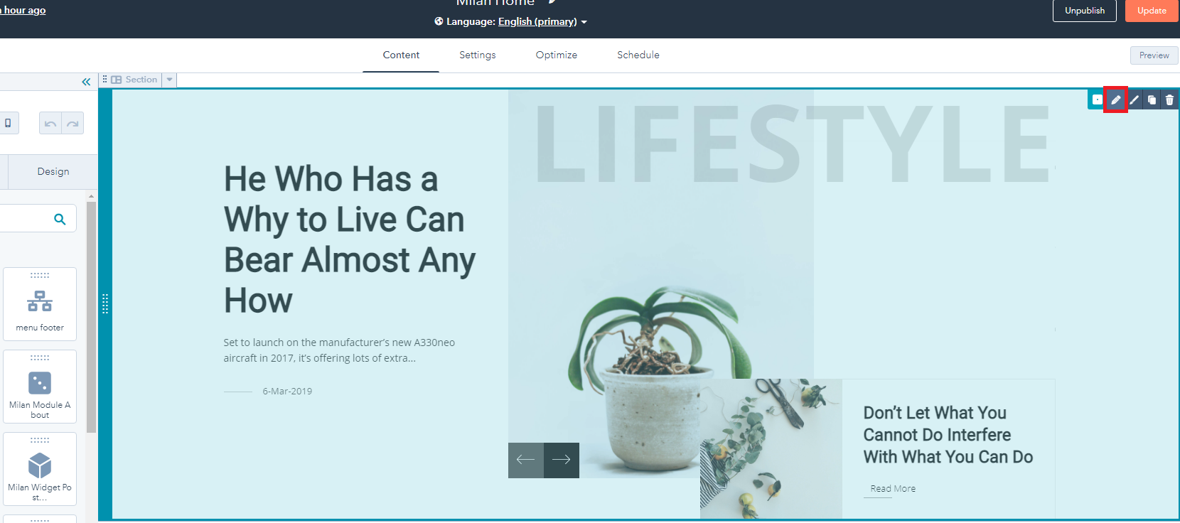 Note:* If your hubspot account has more than one home page and you want each home page to contain different content. Follow steps below.
