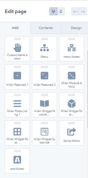 Add page link: adds a menu item that links to a specific HubSpot page.