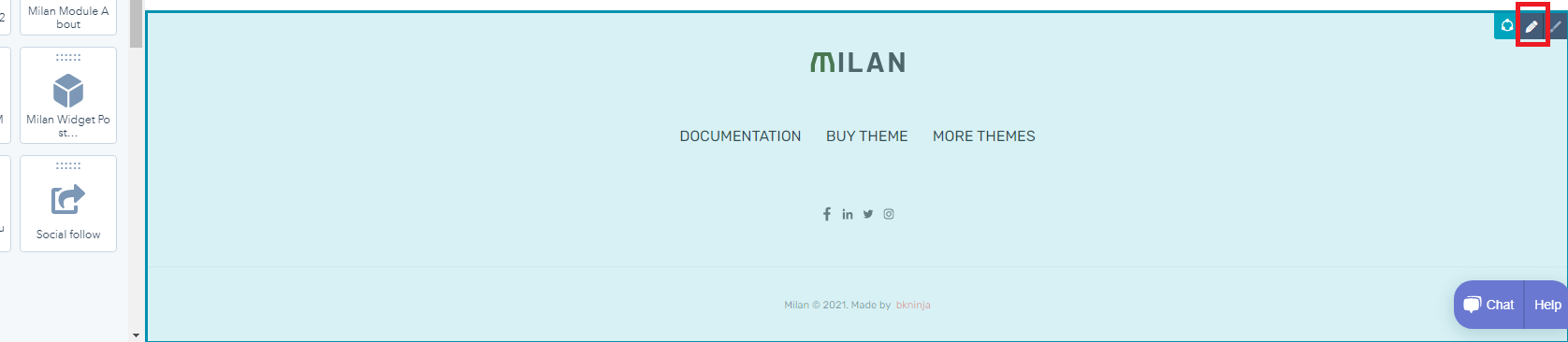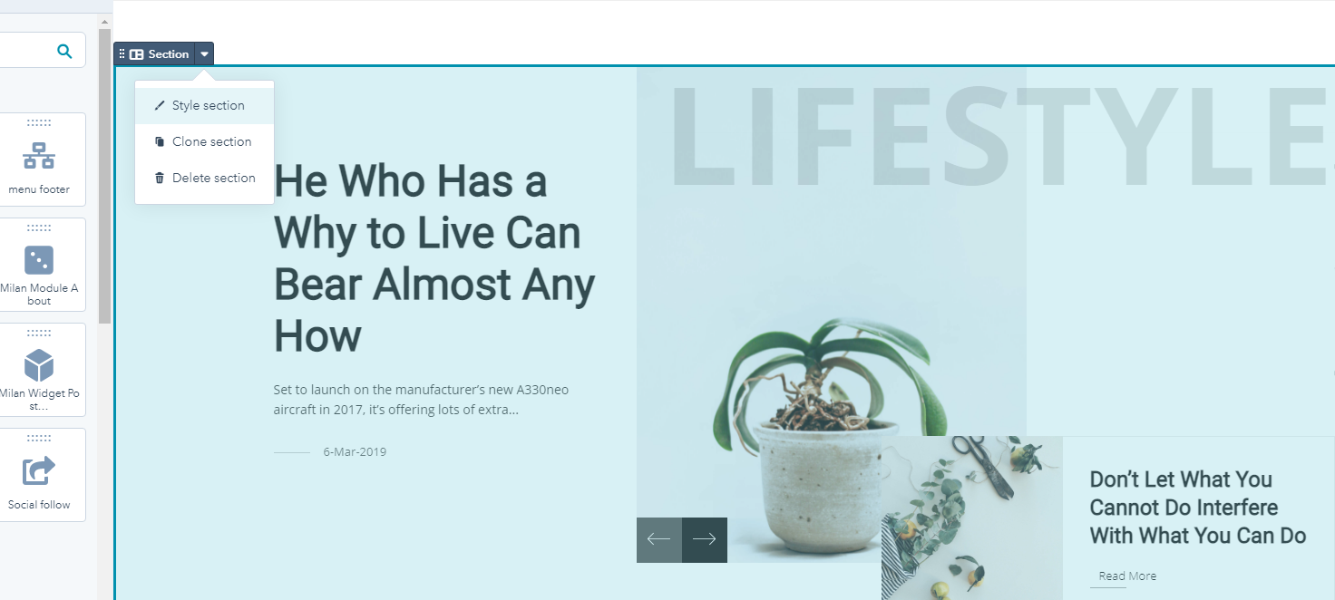 - After drag module move mouse to the section then click icon dropdown and choose Style section