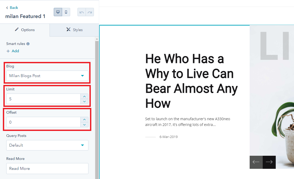 - Choose Module, in field Blog choose blog for module. Then in field Offset set offer for module. Click Apply changes.