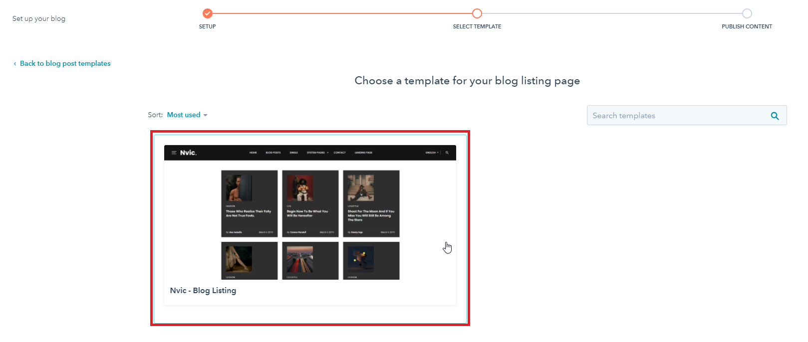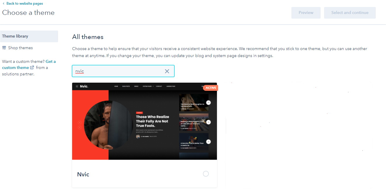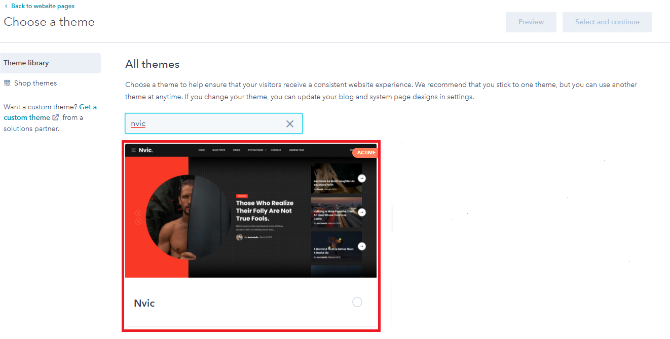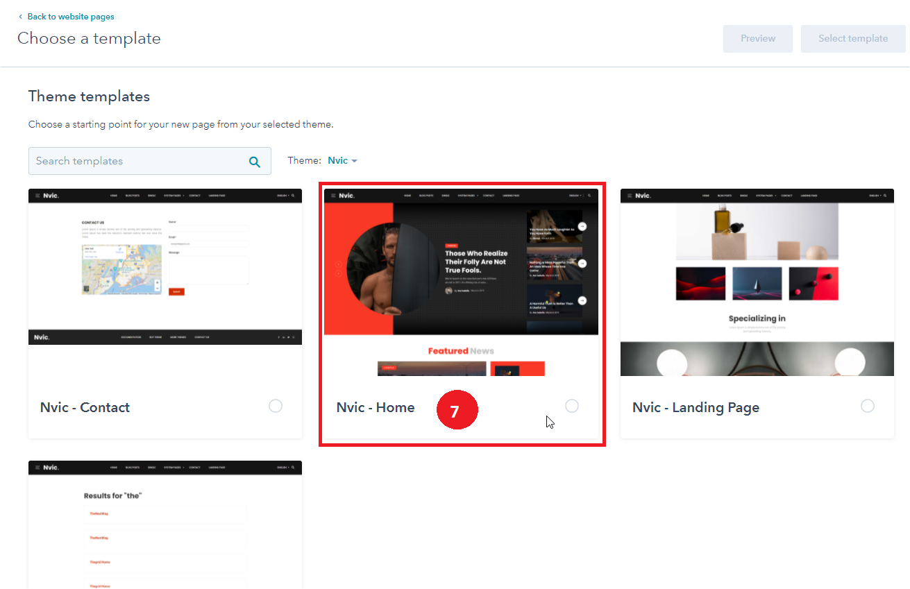 - Choose a template from your newly uploaded theme by selecting the CMS Theme nvic.