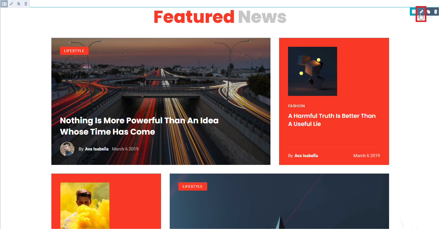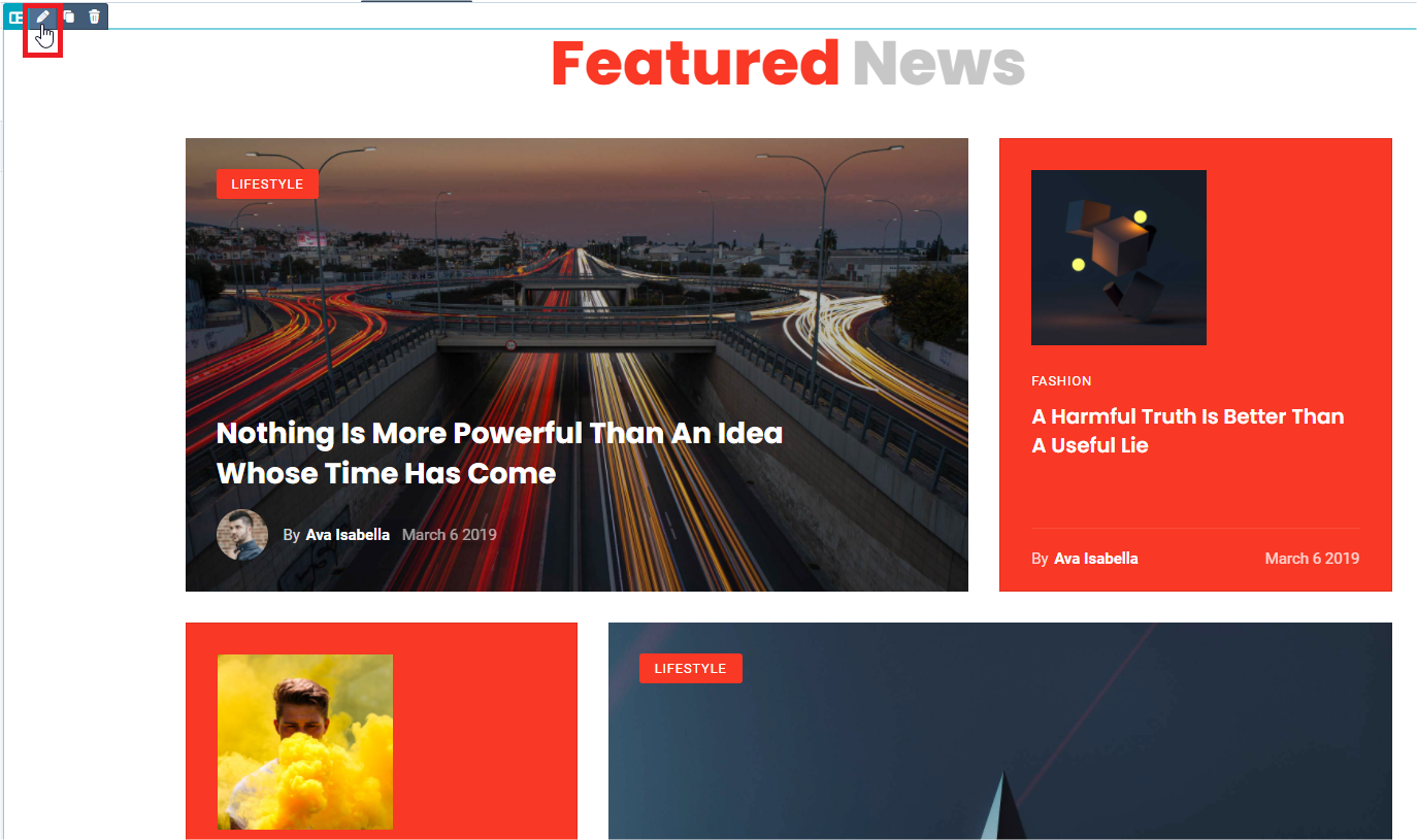 - To edit a module's contents, hover over the module and click the edit pencil icon.