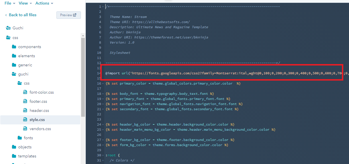 - In left sidebar, choose nvic > css > nvic > css > style.css .