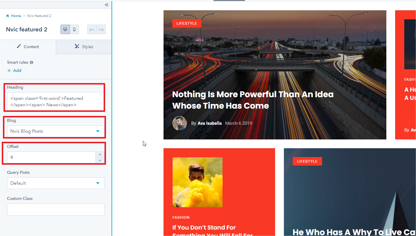 - Click a module to select it in the editor. In the left panel, click the Styles tab to access the styling options for that particular module