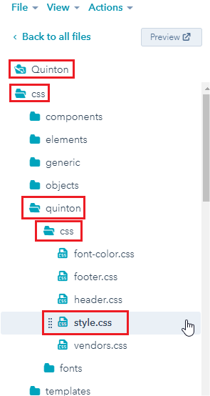 - In left sidebar, choose quinton > css > quinton > css > style.css .