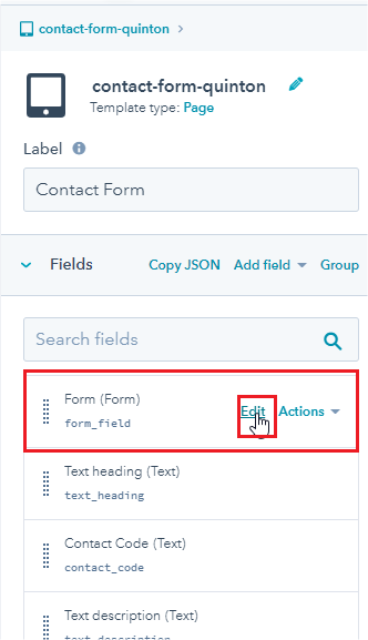- In right sidebar find to Contact Code (Text) and click Edit