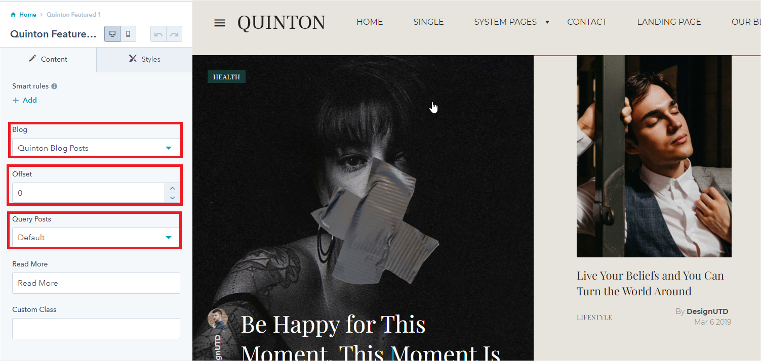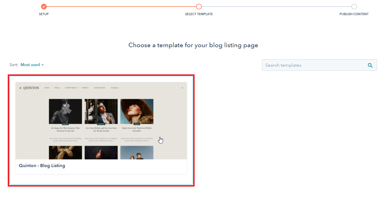 - Select a template for your blog posts, then select a template for your listing page.