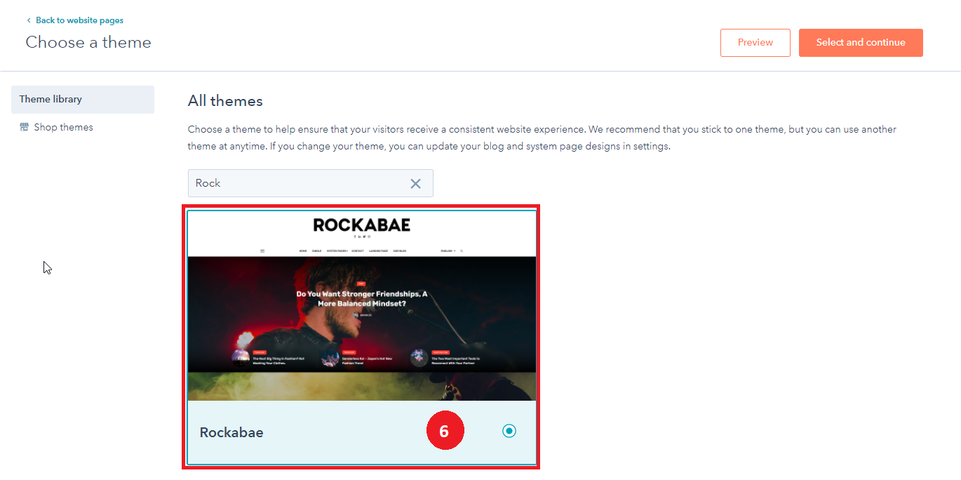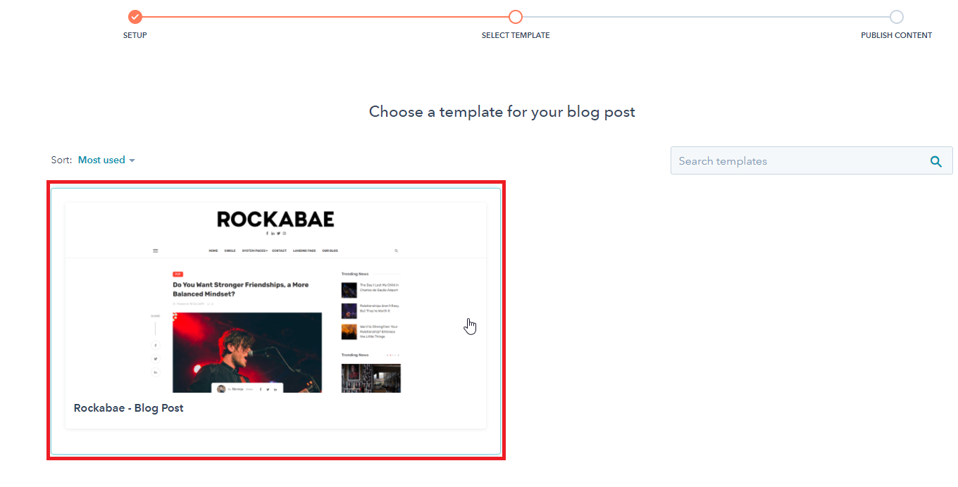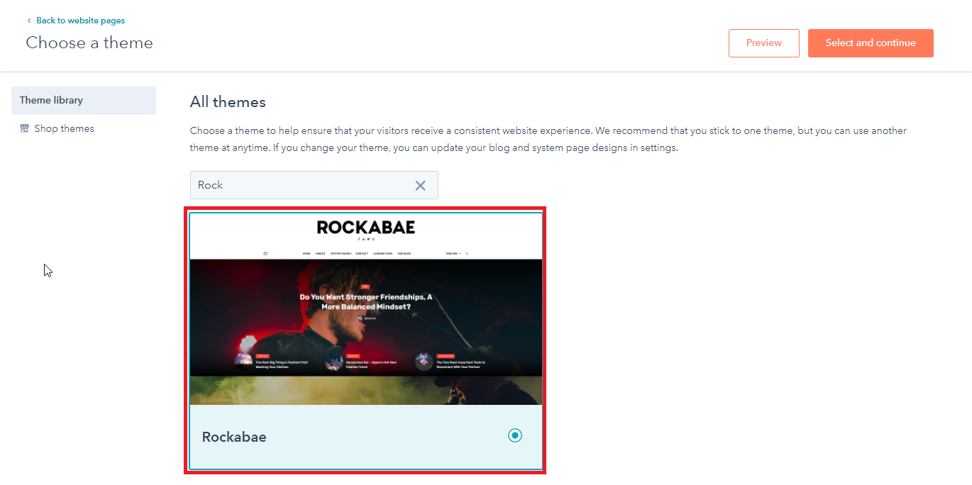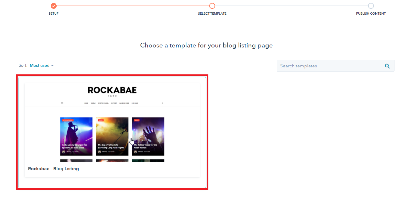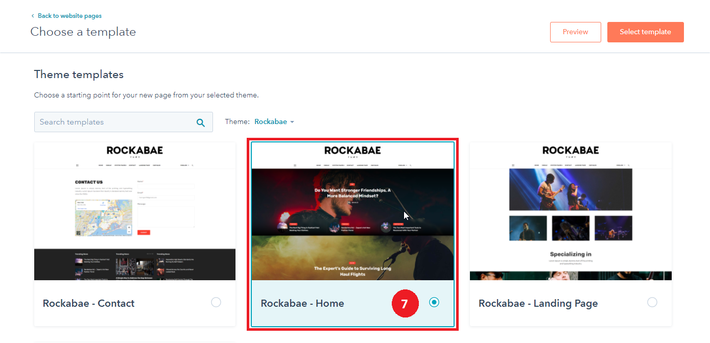 - Choose a template from your newly uploaded theme by selecting the CMS Theme Rockabae.