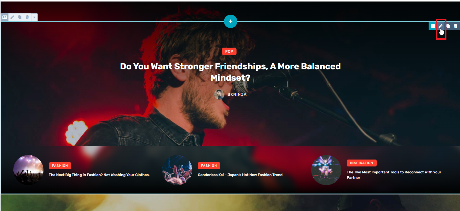 - After drag module move mouse to the section then click icon dropdown and choose Style section