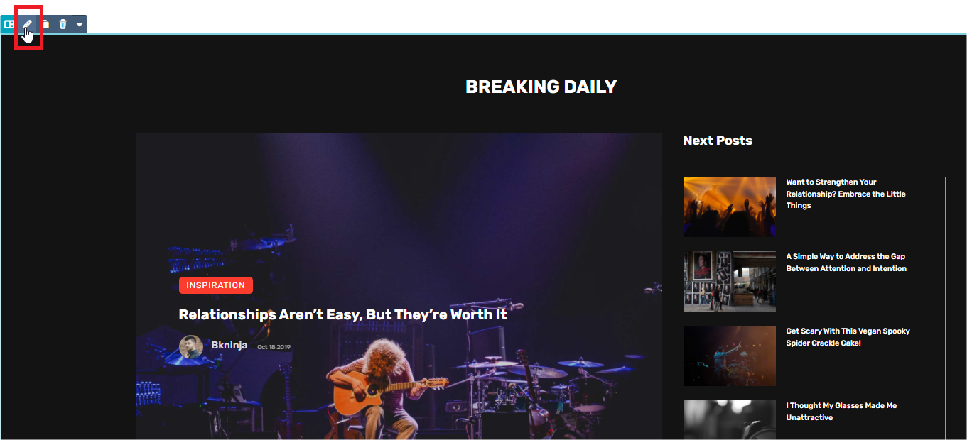 - To edit a module's contents, hover over the module and click the edit pencil icon.