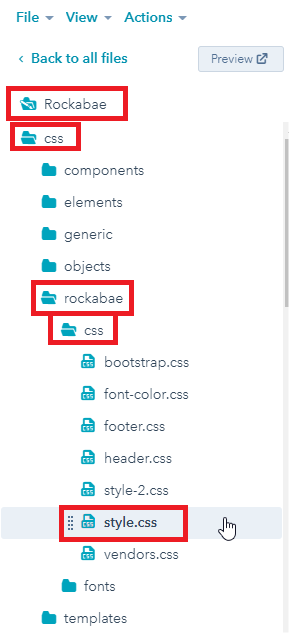 - In left sidebar, choose Rockabae > css > Rockabae > css > style.css .
