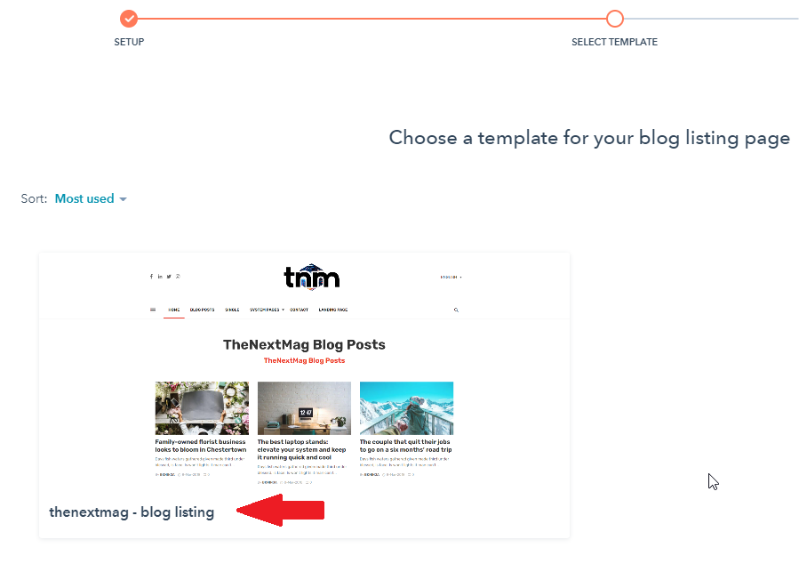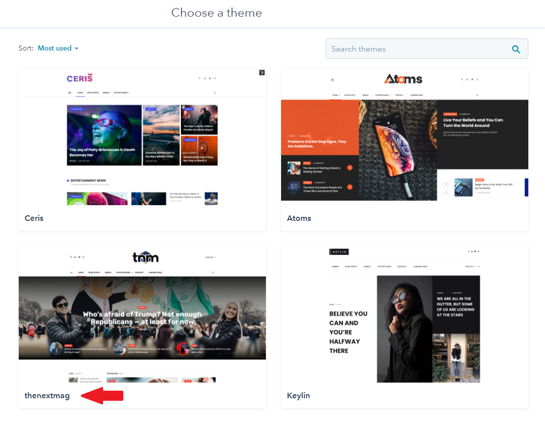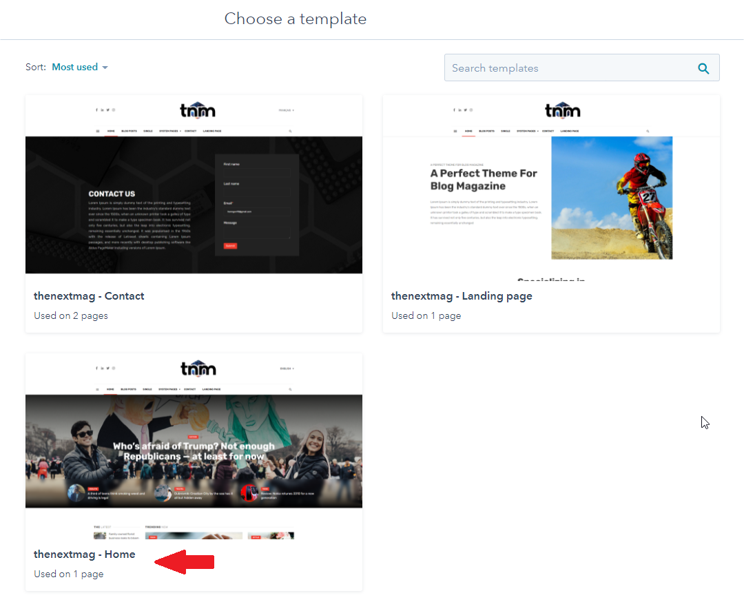 - Choose a template from your newly uploaded theme by selecting the CMS Theme thenxetmag.