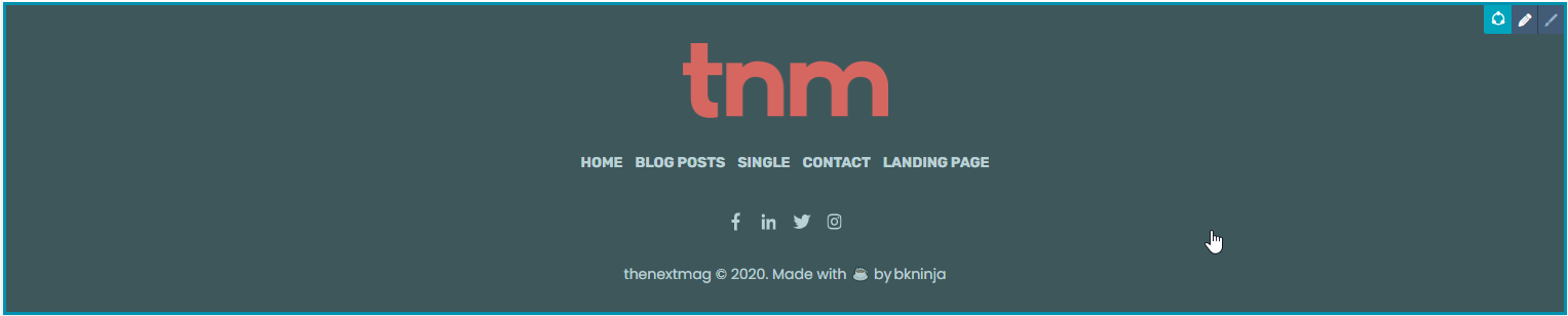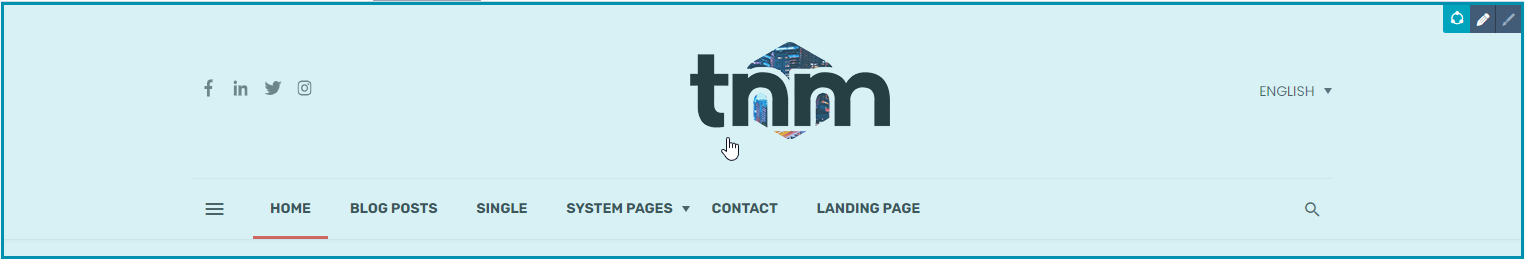 - From editor home page move the mouse to the header and footer of the home page then left click mouse and choose Open in global content editor.