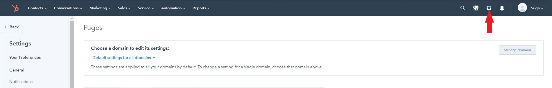 - In your HubSpot account, click the settings icon settings in the main navigation bar