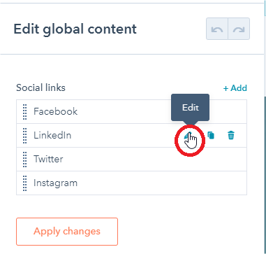 - To edit a module's contents, hover over the module and click the edit pencil icon.