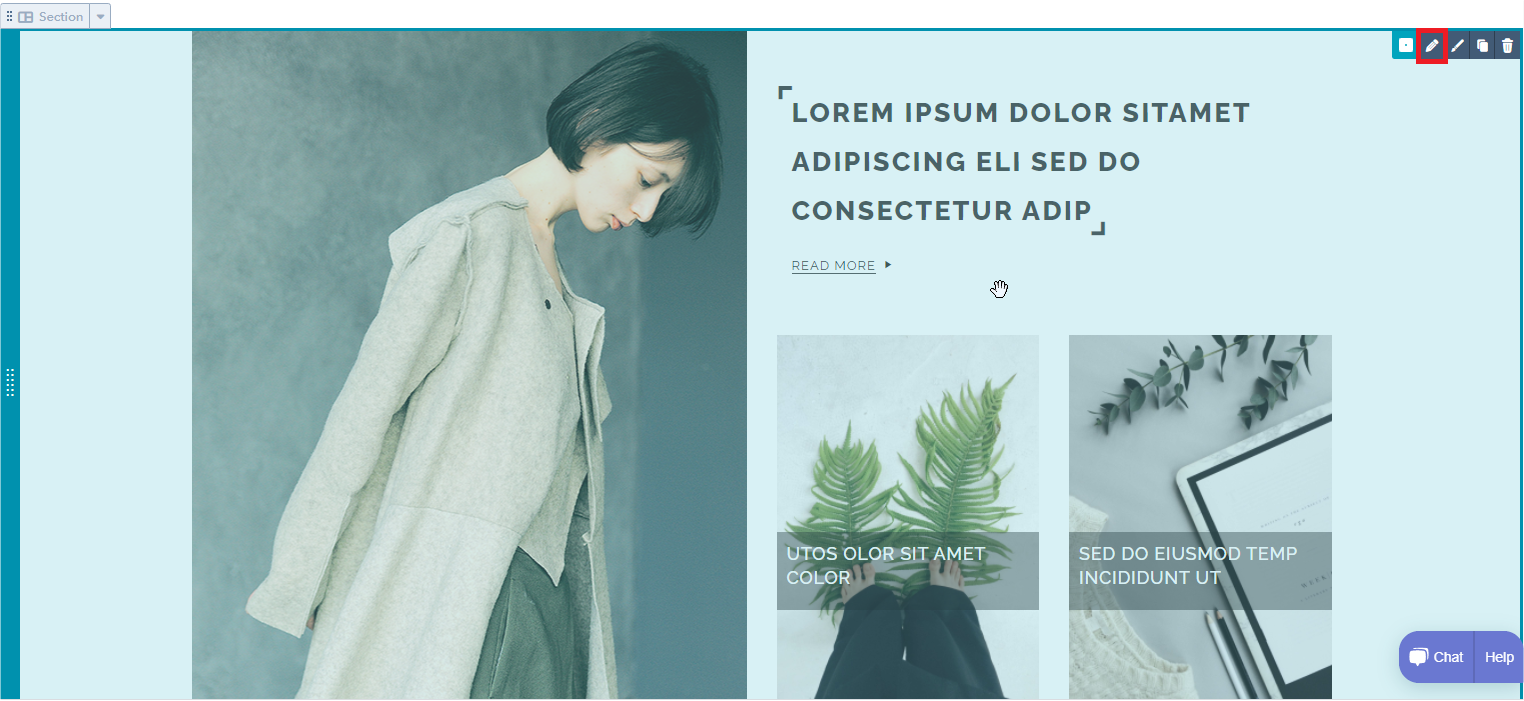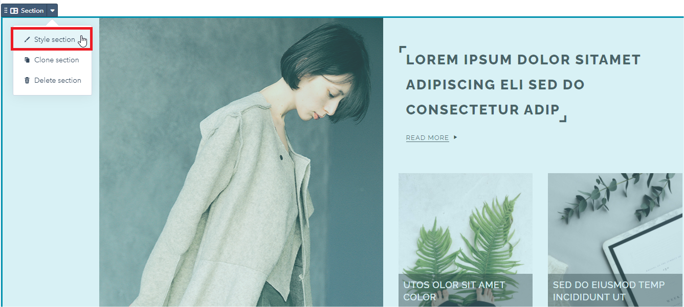 - After drag module move mouse to the section then click icon dropdown and choose Style section