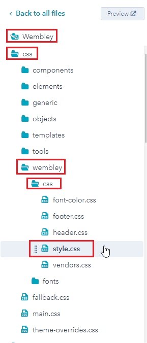 - In left sidebar, choose wembley > css > wembley > css > style.css .