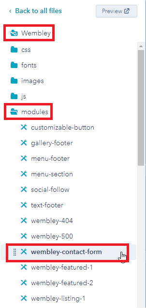 - Inside wembley folder choose Modules > wembley-contact-form.