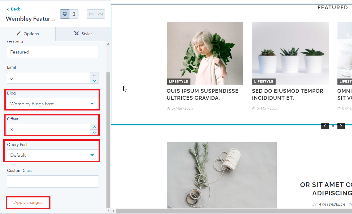- Choose Module, in field Blog choose blog for module. Then in field Offset set offer for module. Click Apply changes.