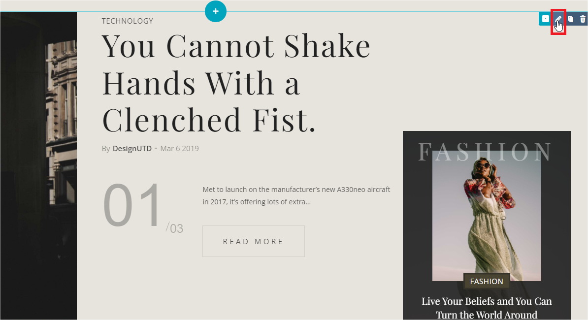 - After drag module move mouse to the section then click icon dropdown and choose Style section