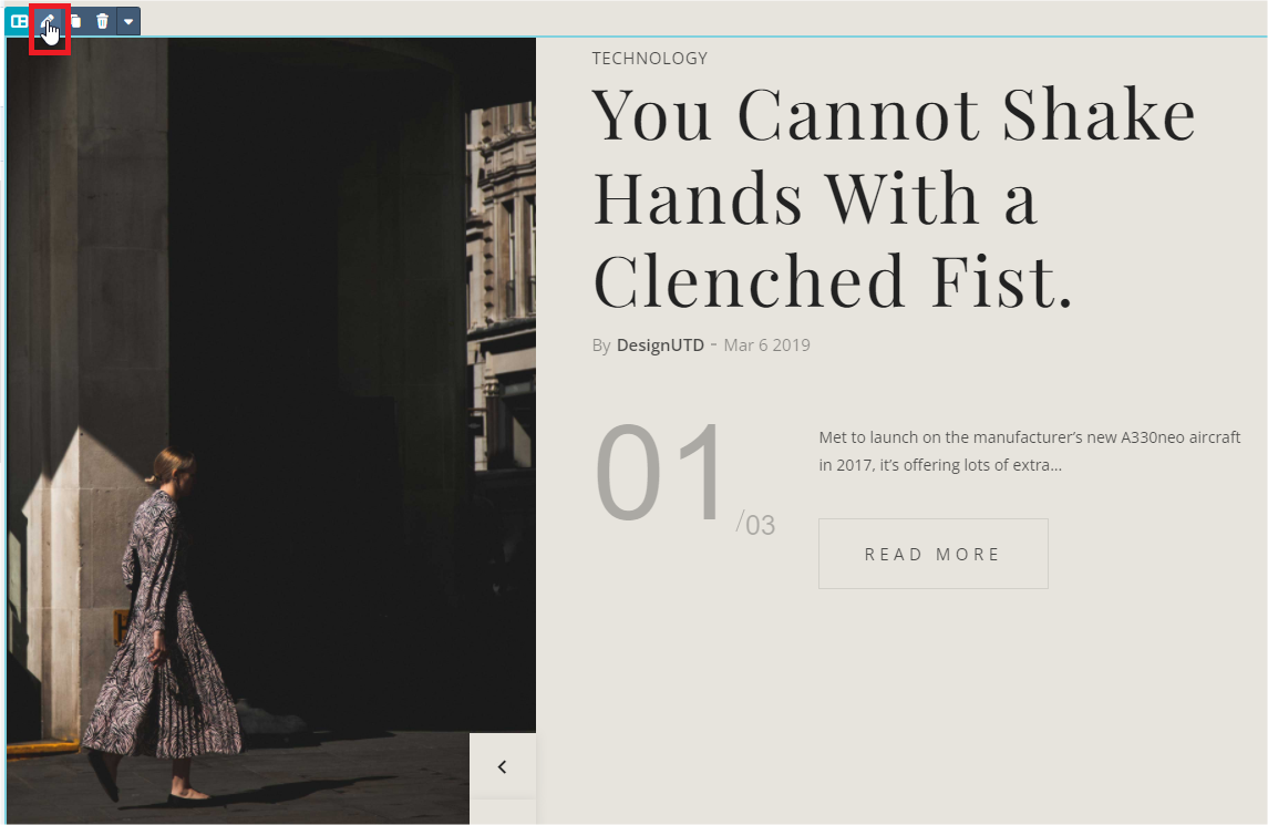 - Some module types, such as headings, can be edited inline directly on the page preview. Clicking a module will also open its editing options in the left panel.