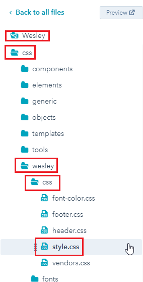 - In left sidebar, choose Wesley > css > Wesley > css > style.css .