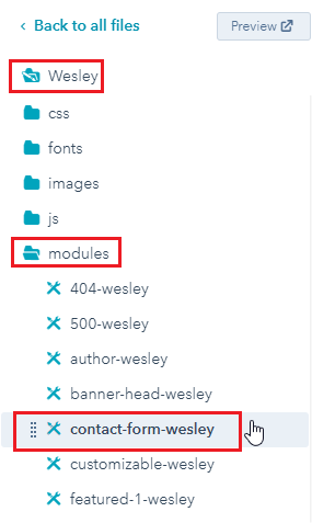 - Inside Wesley folder choose Modules > contact-form-Wesley.