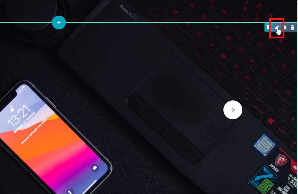 - After drag module move mouse to the section then click icon dropdown and choose Style section