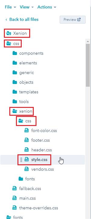 - In left sidebar, choose Xenion > css > Xenion > css > style.css .