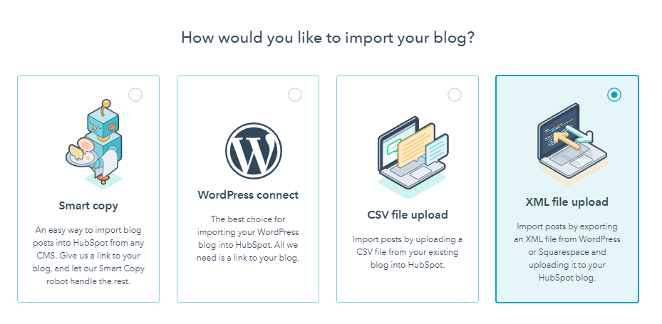 - After choose type Import Samrt copy, WordPress Connect, CSV file upload, XML file upload.