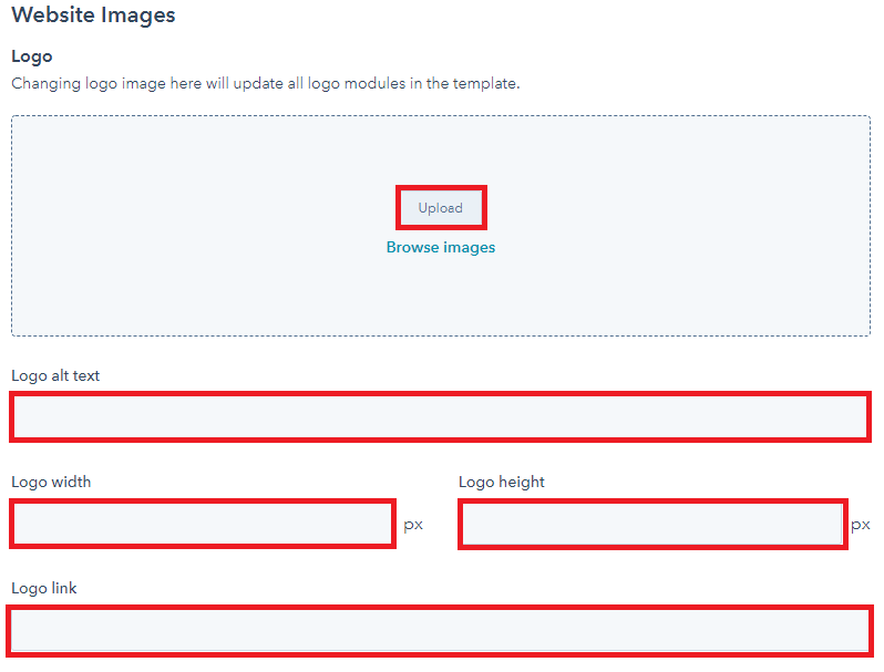 - To change your logo's dimensions, enter a width and height in the Logo width and Logo height fields.