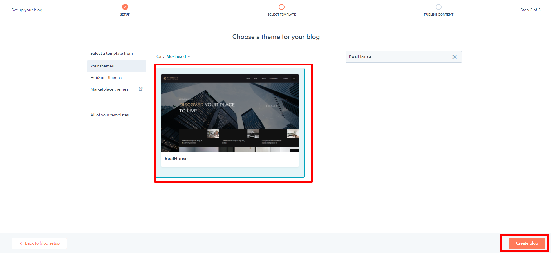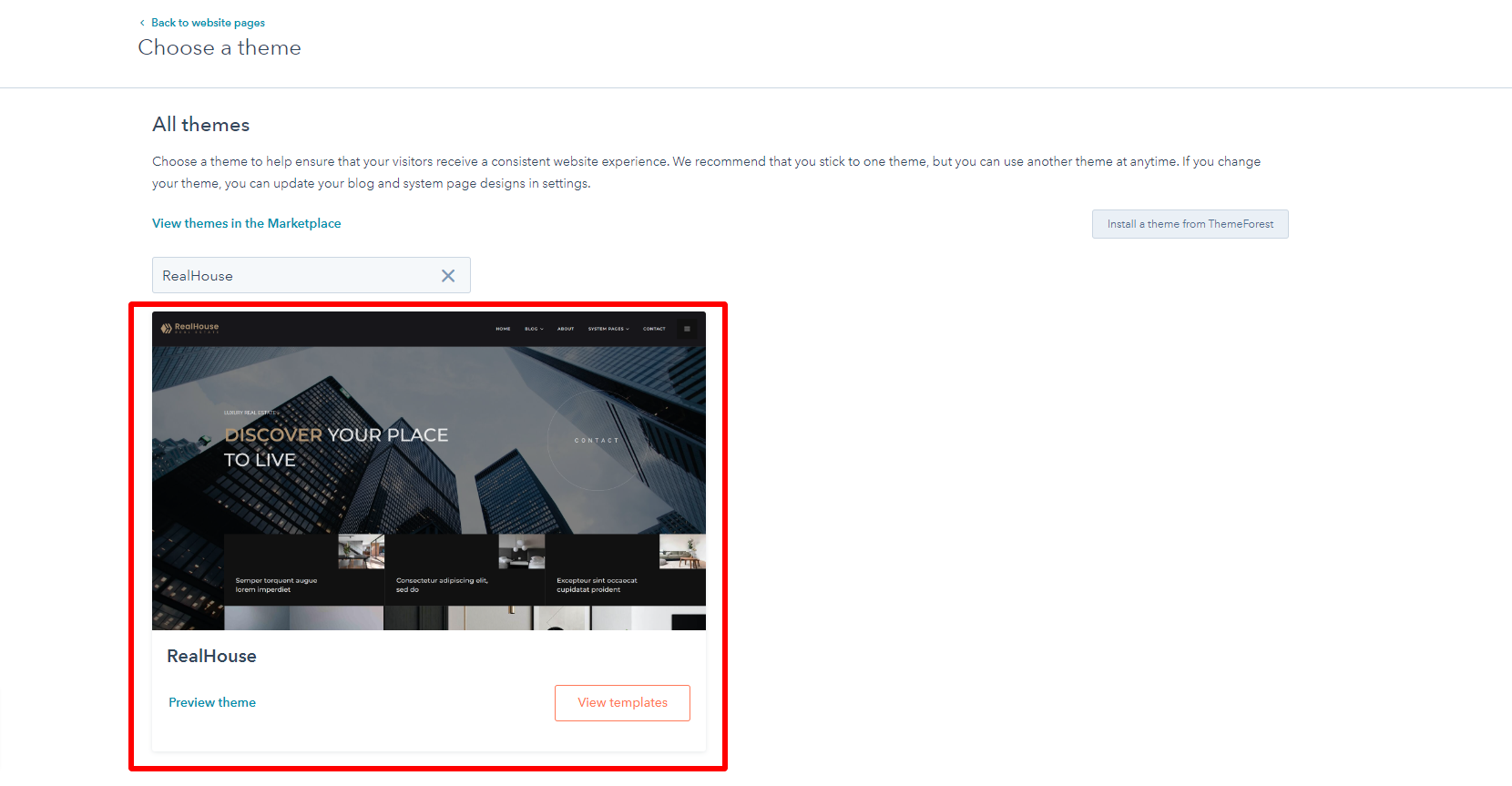 - In your HubSpot account, click the Marketplace > Asset Marketplace choose the theme RealHouse