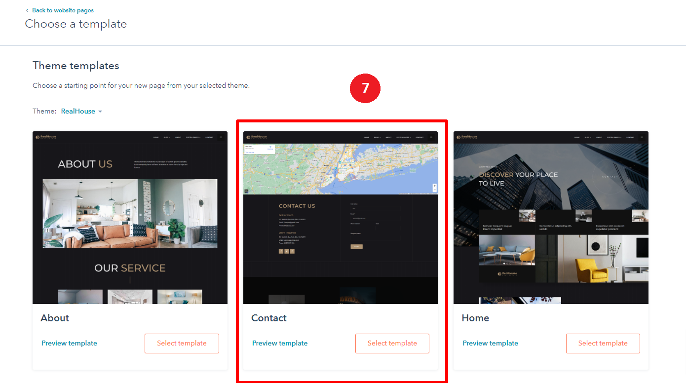 - Choose a template from your newly uploaded theme by selecting the CMS Theme RealHouse.